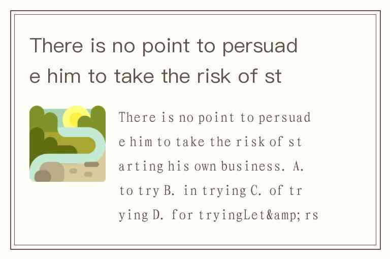 There is no point to persuade him to take the risk of starting his own business. A. to try B. in trying C. of trying D. for trying