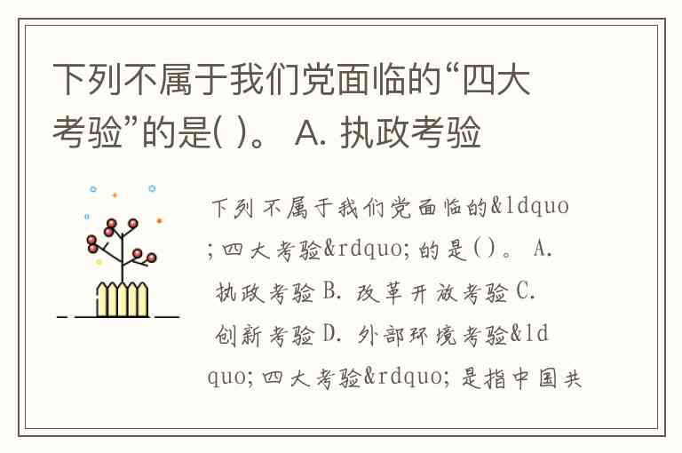 下列不属于我们党面临的“四大考验”的是( )。 A. 执政考验 B. 改革开放考验 C. 创新考验 D. 外部环境考验