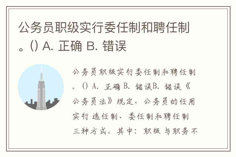 公务员职级实行委任制和聘任制。() A. 正确 B. 错误