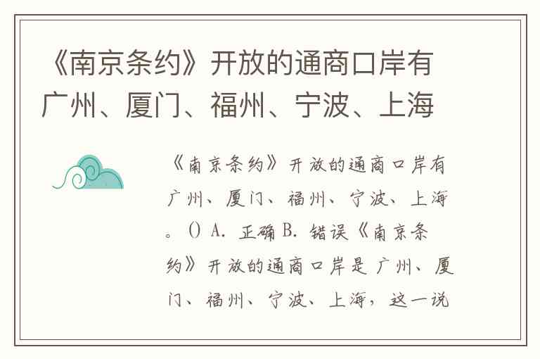 《南京条约》开放的通商口岸有广州、厦门、福州、宁波、上海。() A. 正确 B. 错误