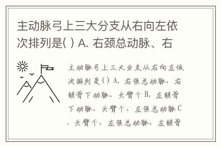 题目考查的是 主动脉弓上的三大分支从右向左的排列顺序。