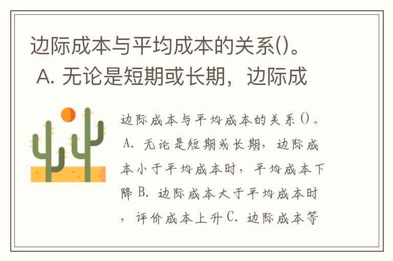 A. 无论是短期或长期,边际成本小于平均成本时,平均成本下降