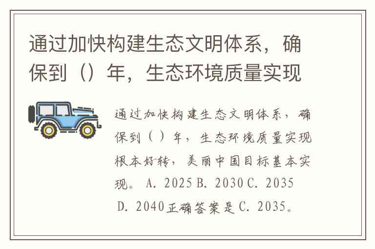 通过加快构建生态文明体系,确保到()年,生态环境质量实现根本好转,美丽中国目标基本实现。 A. 2025 B. 2030 C. 2035 D. 2040