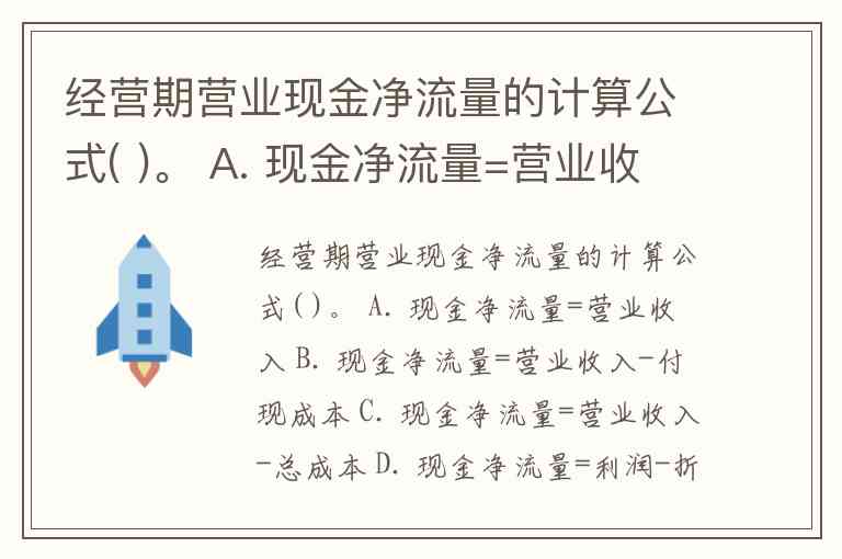经营期营业现金净流量的计算公式( )。 A. 现金净流量=营业收入 B. 现金净流量=营业收入-付现成本 C. 现金净流量=营业收入-总成本 D. 现金净流量=利润-折旧额