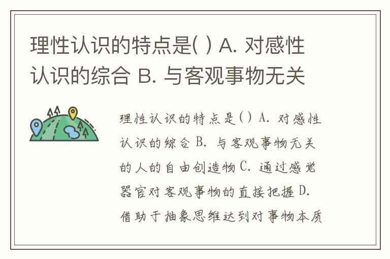 理性认识的特点是( ) A. 对感性认识的综合 B. 与客观事物无关的人的自由创造物 C. 通过感觉器官对客观事物的直接把握 D. 借助于抽象思维达到对事物本质的把握