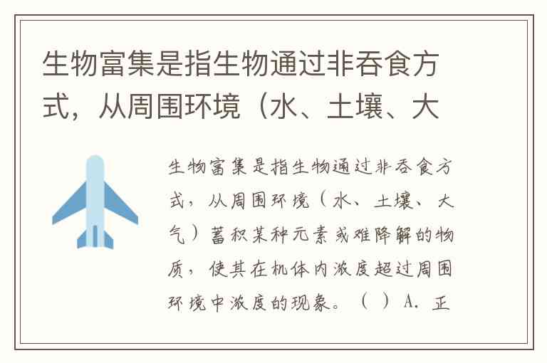 题干对“生物富集”的定义中,将方式描述为 “非吞食方式” 是不准确的。