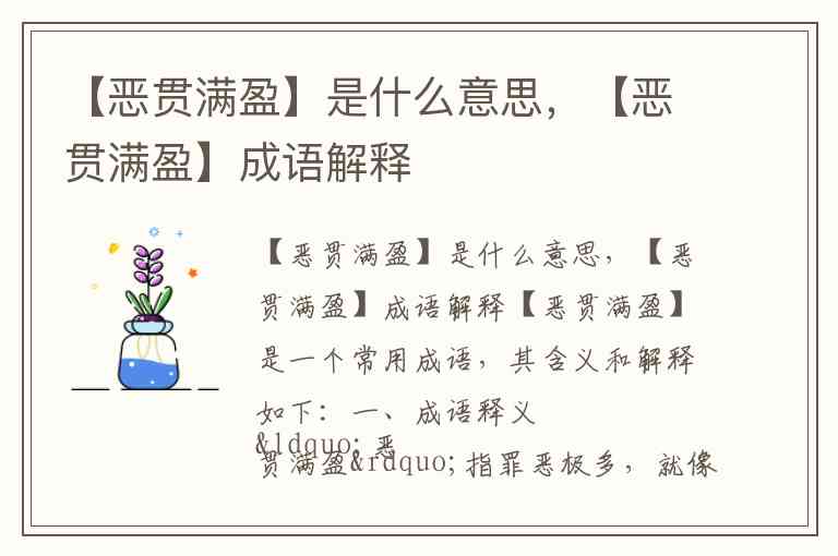 【恶贯满盈】是一个常用成语,其含义和解释如下: