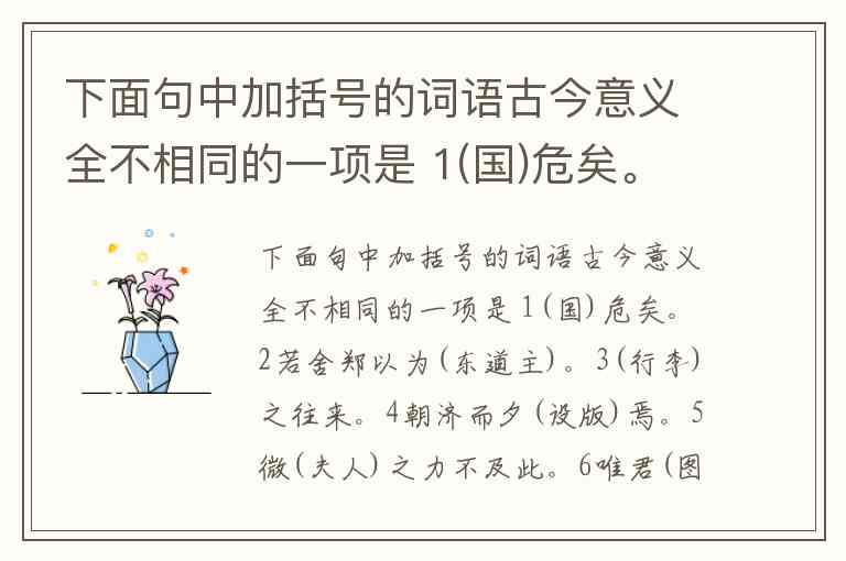 国危矣 – “国” 在古义中指诸侯国,今义多指国家。不过古今都有“国家”概念,只是所指政治实体范围有变化,并非“全不相同”,严格来说有一定差异但不算完全不同(有时候考题会判定为有差异但不是这里“全不相同”)。我们姑且先放。