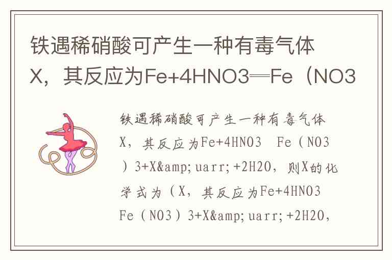 铁遇稀硝酸可产生一种有毒气体X,其反应为Fe+4HNO3═Fe(NO3)3+X↑+2H2O,则X的化学式为(X,其反应为Fe+4HNO3═Fe(NO3)3+X↑+2H2O,则X的化学式为( ) A. N2 B. N2O C. NO D. NO2