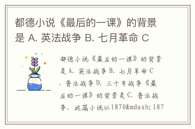 都德小说《最后的一课》的背景是 A. 英法战争 B. 七月革命 C. 普法战争 D. 三十年战争