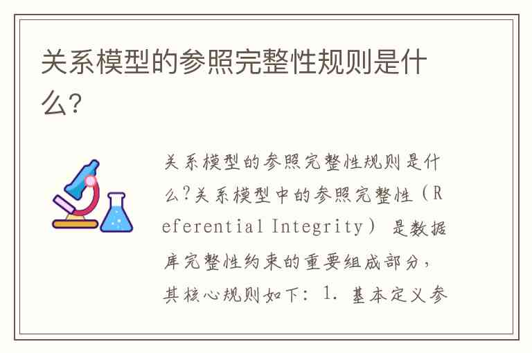 关系模型中的参照完整性(Referential Integrity) 是数据库完整性约束的重要组成部分,其核心规则如下: