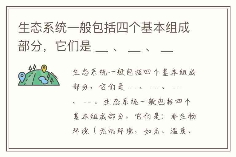 生态系统一般包括四个基本组成部分,它们是 __ 、 __ 、 __ 、 __ 。