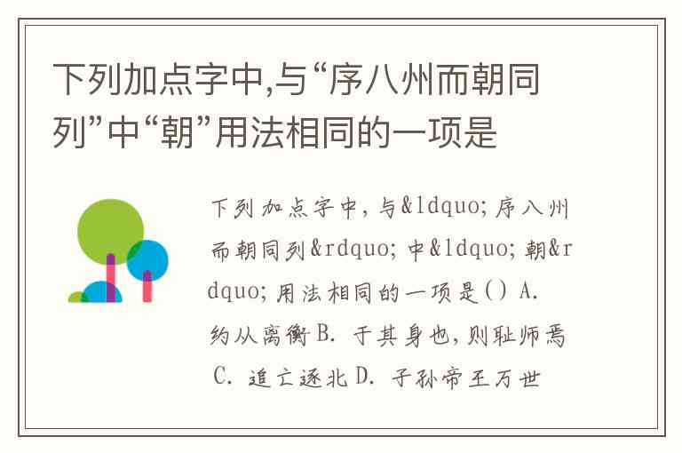 下列加点字中,与“序八州而朝同列”中“朝”用法相同的一项是( ) A. 约从离衡 B. 于其身也,则耻师焉 C. 追亡逐北 D. 子孙帝王万世之业也