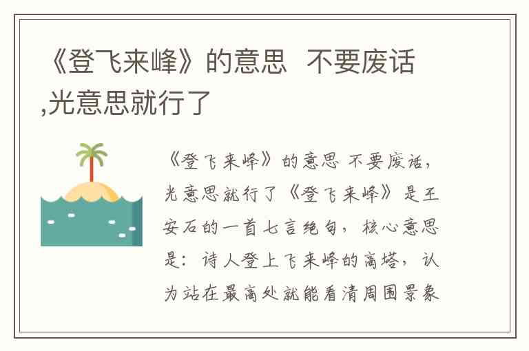 《登飞来峰》是王安石的一首七言绝句,核心意思是: