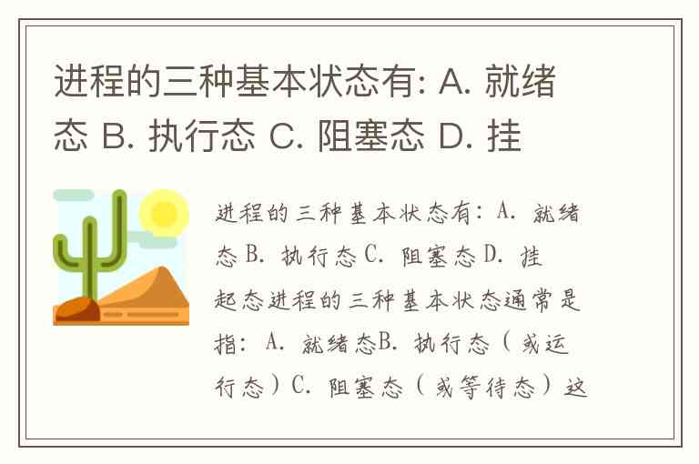 进程的三种基本状态有: A. 就绪态 B. 执行态 C. 阻塞态 D. 挂起态