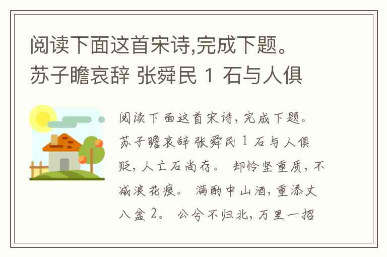 阅读下面这首宋诗,完成下题。 苏子瞻哀辞 张舜民 1 石与人俱贬,人亡石尚存。 却怜坚重质,不减浪花痕。 满酌中山酒,重添丈八盆 2。 公兮不归北,万里一招魂。 注: 1张舜民:和苏轼感情深厚。苏轼知定州期间得墨石,作大盆盛之,数水其上,名其室为雪浪斋。后来苏轼被贬岭南,到宋时,作者知定州,重新修茸雪浪斋,而此时得知苏轼病逝,于是写了这首哀辞。2丈八盆:指苏轼用来盛放墨石的盆。 下列对这首诗的赏析,不正确的一项是( ) A. 苏轼被贬,墨石也被贬,“石与人俱贬”中的“俱”字,道尽当时的炎凉世态。 B. 首联下句是说,苏轼虽然已经去世,但“石尚存”,足以让作者感到一丝欣慰。 C. “重添丈八盆”体现了作者对苏轼遗物的珍重,表达了作者对苏轼的思念之情。 D. 尾联直抒胸臆,情真意切,苏轼病逝,作者只能在万里之外的定州为其招魂。