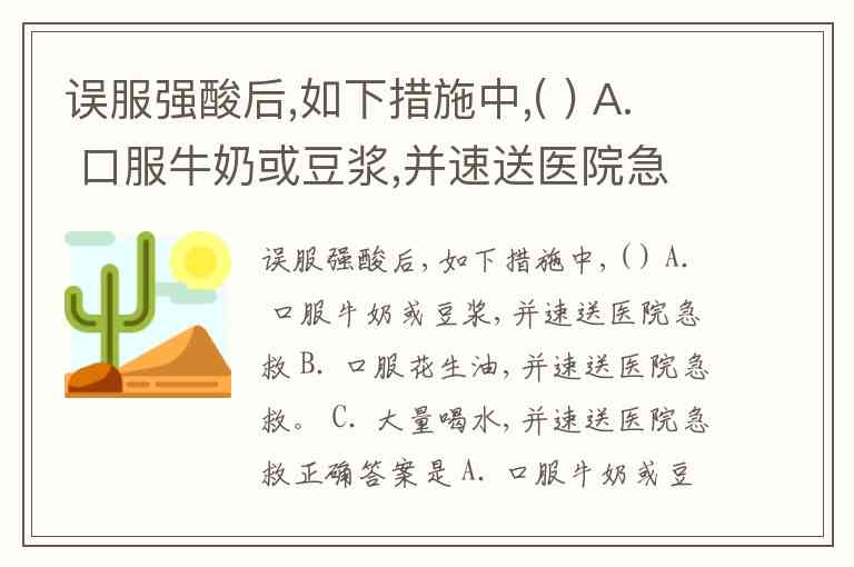 正确答案是 A. 口服牛奶或豆浆,并速送医院急救。