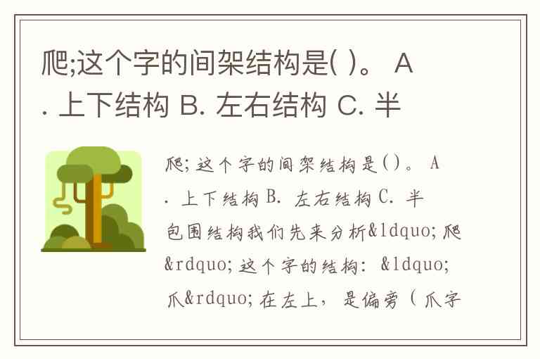 爬;这个字的间架结构是( )。 A. 上下结构 B. 左右结构 C. 半包围结构