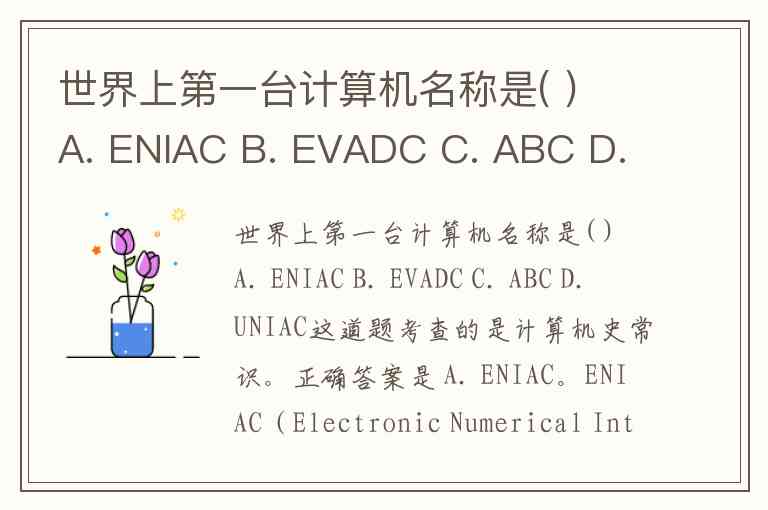世界上第一台计算机名称是( ) A. ENIAC B. EVADC C. ABC D. UNIAC