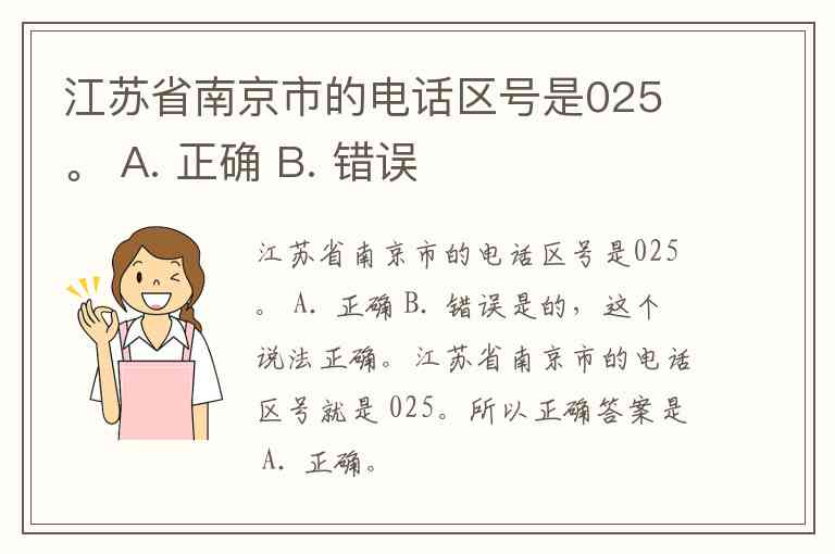 江苏省南京市的电话区号是025 。 A. 正确 B. 错误