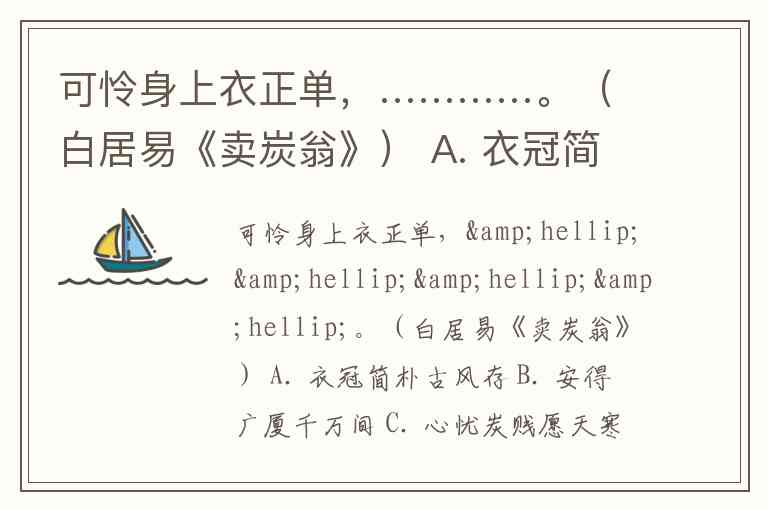 可怜身上衣正单,…………。(白居易《卖炭翁》) A. 衣冠简朴古风存 B. 安得广厦千万间 C. 心忧炭贱愿天寒 D. 雪上空留马行处