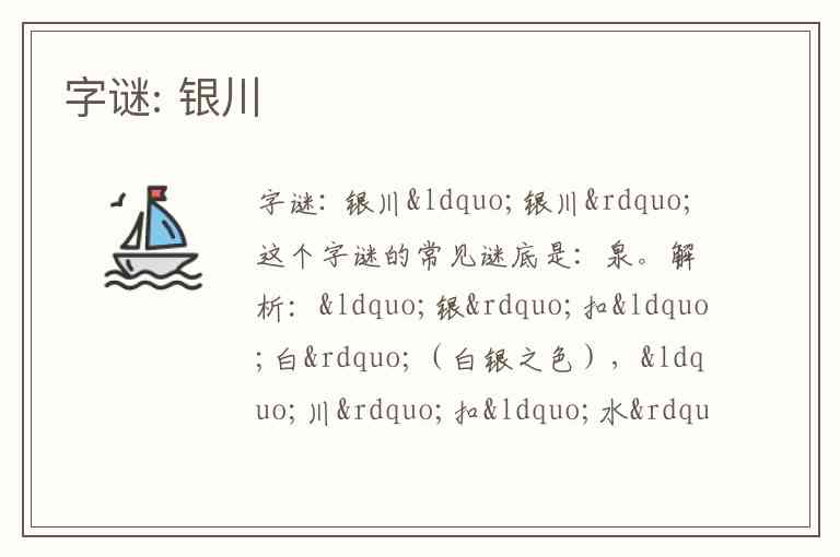 “银”扣“白”(白银之色),“川”扣“水”(河流)。
