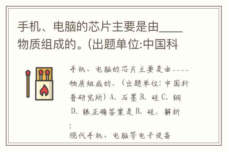 手机、电脑的芯片主要是由____物质组成的。(出题单位:中国科普研究所) A. 石墨 B. 硅 C. 铜 D. 银