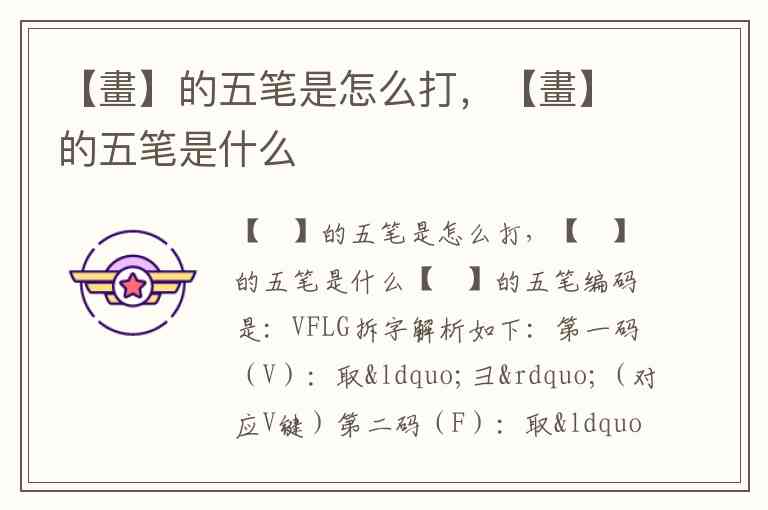 【畫】的五笔编码是:VFLG