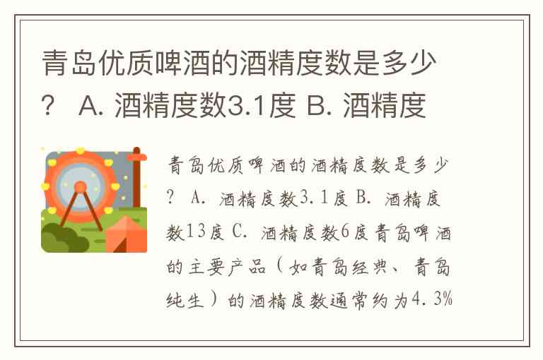 青岛优质啤酒的酒精度数是多少? A. 酒精度数3.1度 B. 酒精度数13度 C. 酒精度数6度