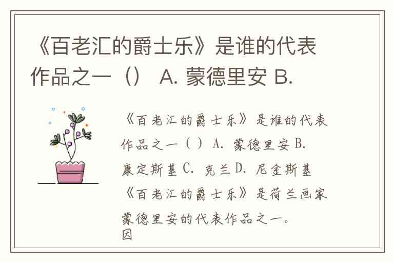 《百老汇的爵士乐》是谁的代表作品之一() A. 蒙德里安 B. 康定斯基 C. 克兰 D. 尼金斯基