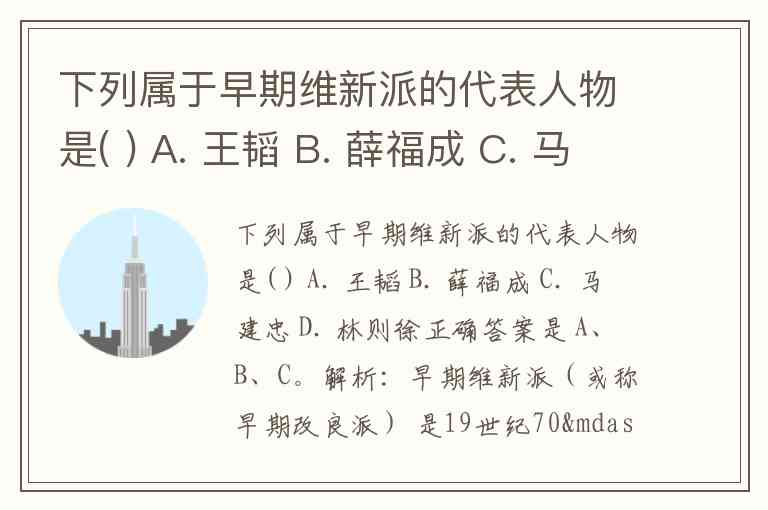 下列属于早期维新派的代表人物是( ) A. 王韬 B. 薛福成 C. 马建忠 D. 林则徐