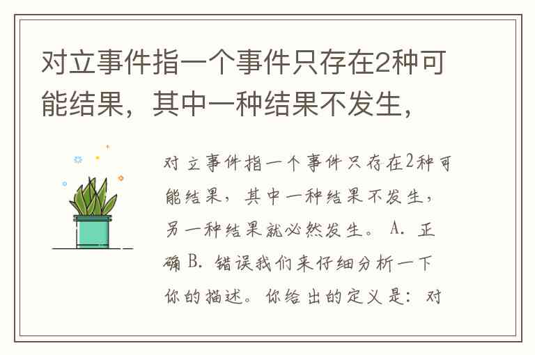 但是,这里有个细节要注意:描述中说“一个事件只存在 2 种可能结果”,严格说“一个事件”是一个布尔命题(发生或不发生),它本身并不是“包含两种结果”的东西,而是“对立事件”涉及两个事件(A 和非 A)。