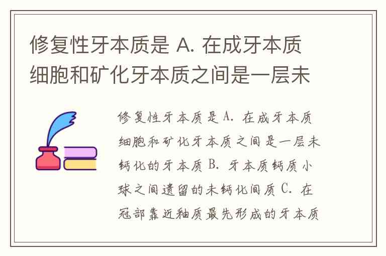 A. 在成牙本质细胞和矿化牙本质之间是一层未钙化的牙本质 —— 这描述的是 前期牙本质,不是修复性牙本质。
