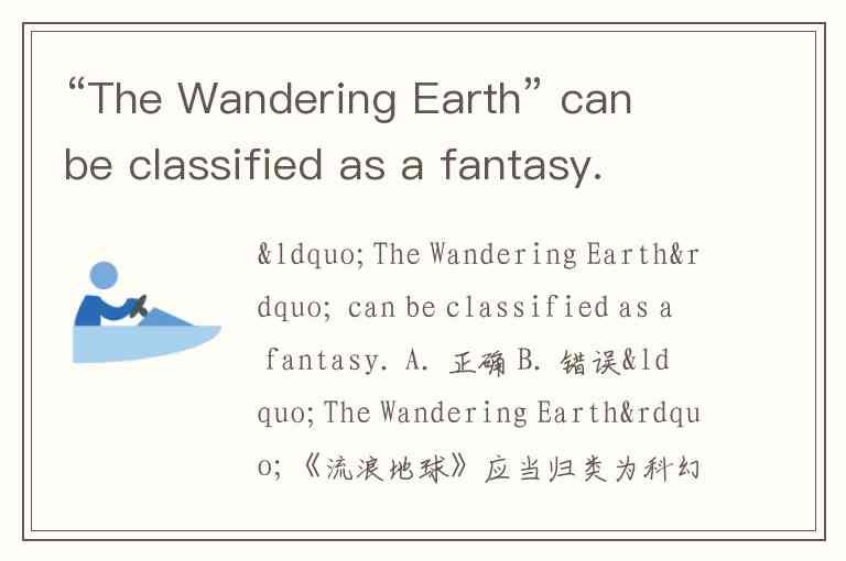 “The Wandering Earth” can be classified as a fantasy. A. 正确 B. 错误