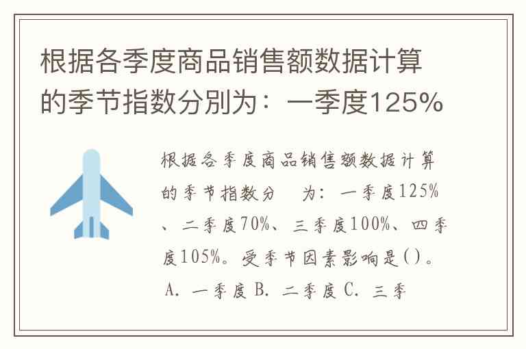 根据各季度商品销售额数据计算的季节指数分别为一季度125%,二季度70%,三季度100%,四季度105%。不受季节因素影响的是( )