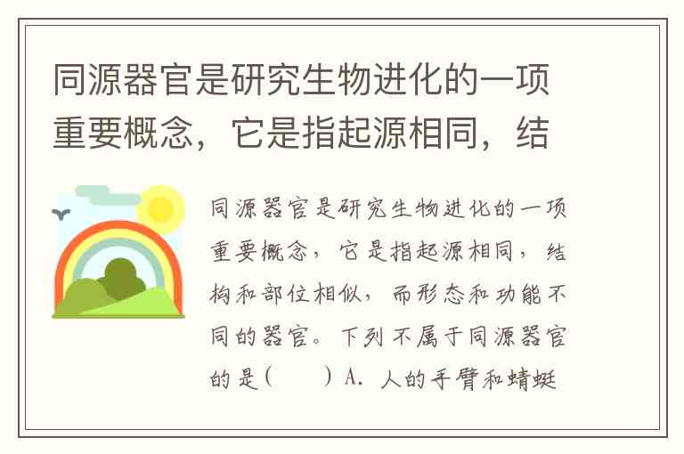 我们先明确一下概念:同源器官指起源相同(即来源于相同的胚胎发育和演化祖先)、结构和部位相似,但形态和功能不同的器官。