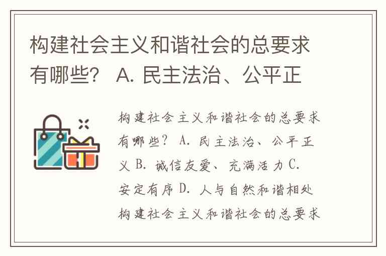 构建社会主义和谐社会的总要求有哪些? A. 民主法治、公平正义 B. 诚信友爱、充满活力 C. 安定有序 D. 人与自然和谐相处