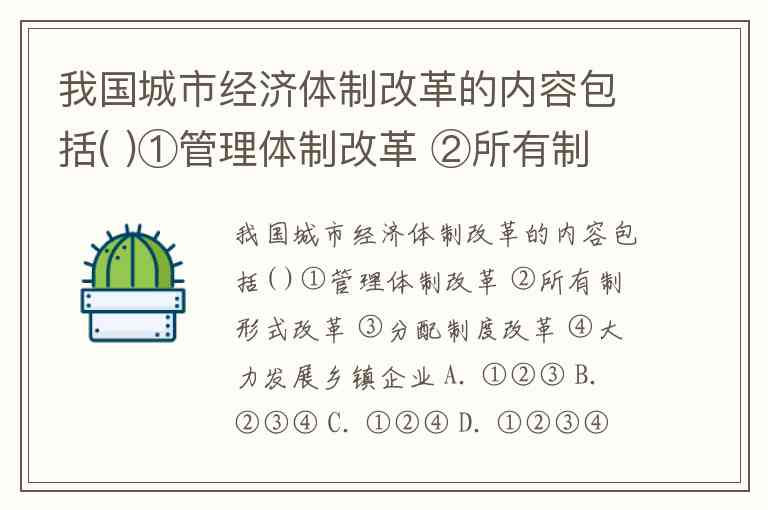 我国城市经济体制改革的内容包括( )①管理体制改革 ②所有制形式改革 ③分配制度改革 ④大力发展乡镇企业 A. ①②③ B. ②③④ C. ①②④ D. ①②③④