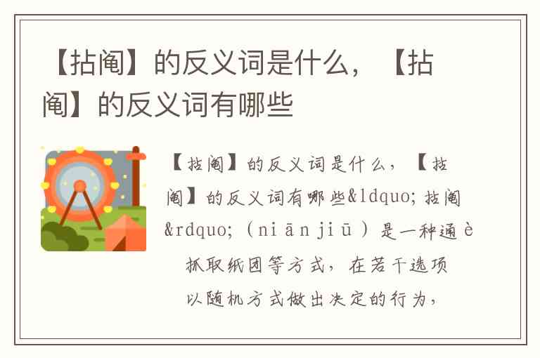 【拈阄】的反义词是什么,【拈阄】的反义词有哪些