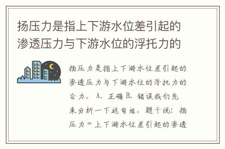 因此,从定义看,题干描述与扬压力的通常定义一致。