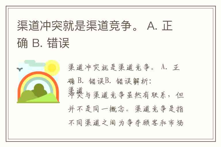 渠道冲突就是渠道竞争。 A. 正确 B. 错误