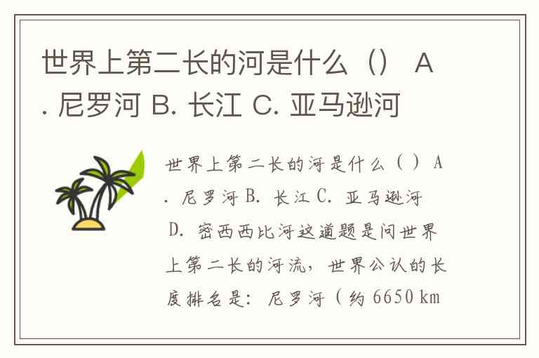 世界上第二长的河是什么() A. 尼罗河 B. 长江 C. 亚马逊河 D. 密西西比河