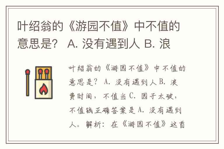 叶绍翁的《游园不值》中不值的意思是? A. 没有遇到人 B. 浪费时间,不值当 C. 园子太破,不值钱