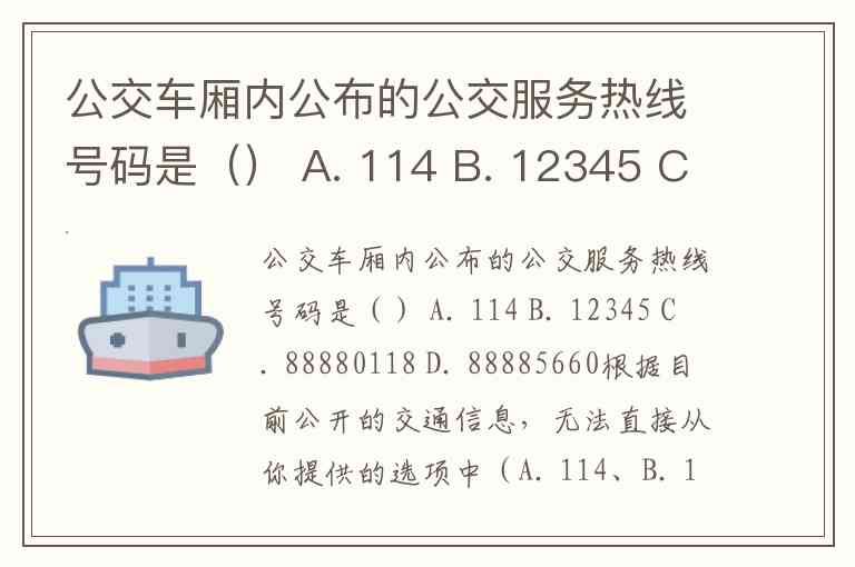 公交车厢内公布的公交服务热线号码是() A. 114 B. 12345 C. 88880118 D. 88885660