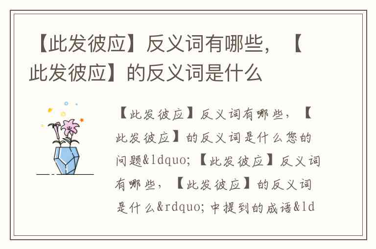 您的问题“【此发彼应】反义词有哪些,【此发彼应】的反义词是什么”中提到的成语“此发彼应”在通用的汉语成语词典中并不常见,可能是一个生僻或自定义的组合。