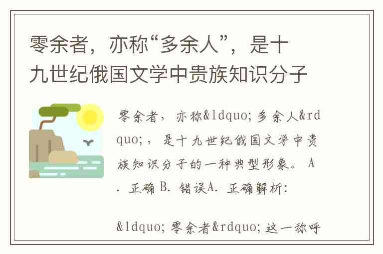 因此,题干将“零余者”等同于俄国文学中的“多余人”,并指出其是19世纪俄国贵族知识分子的一种典型形象,这一说法是正确的。