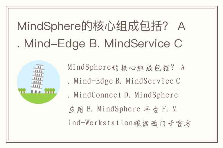 A. Mind-Edge: 这不是标准的MindSphere核心组件名称。通常所说的“边缘”层(如工业边缘计算)是MindSphere生态系统的重要部分,负责现场数据处理,但“Mind-Edge”并非其官方核心组件称谓。更常见的相关产品是 Industrial Edge。