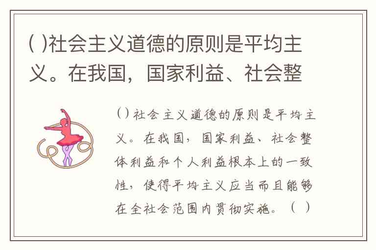 ( )社会主义道德的原则是平均主义。在我国,国家利益、社会整体利益和个人利益根本上的一致性,使得平均主义应当而且能够在全社会范围内贯彻实施。( ) A. 正确 B. 错误
