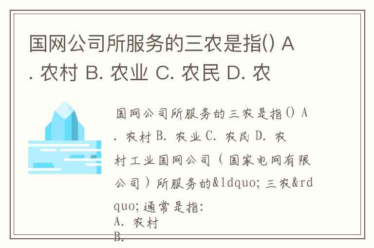 国网公司所服务的三农是指() A. 农村 B. 农业 C. 农民 D. 农村工业