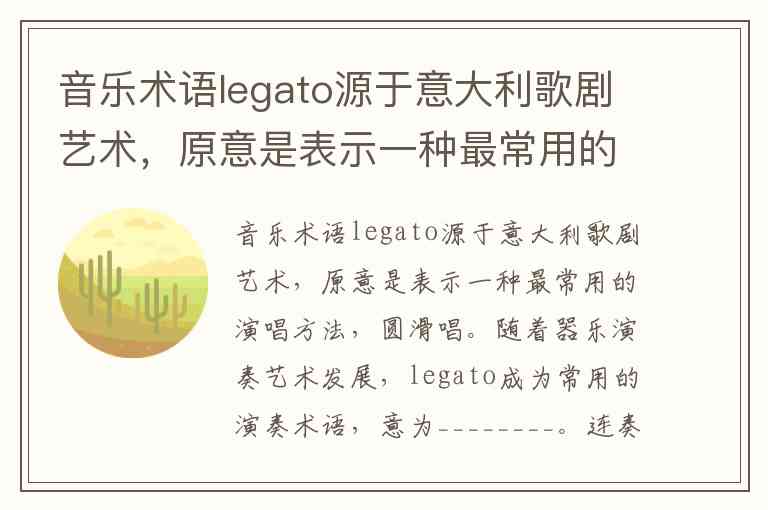 音乐术语legato源于意大利歌剧艺术,原意是表示一种最常用的演唱方法,圆滑唱。随着器乐演奏艺术发展,legato成为常用的演奏术语,意为________。